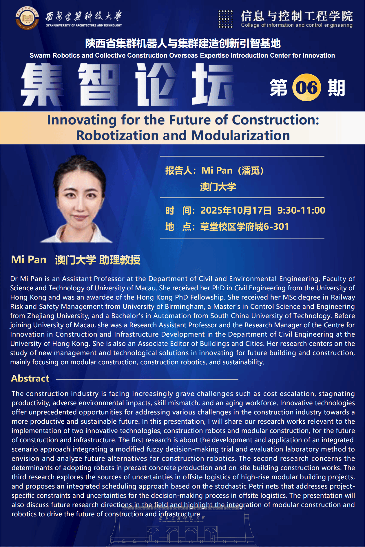 名 称: 【集智论坛】第六期:Innovating for the Future of Construction:Robotization and Modularization
